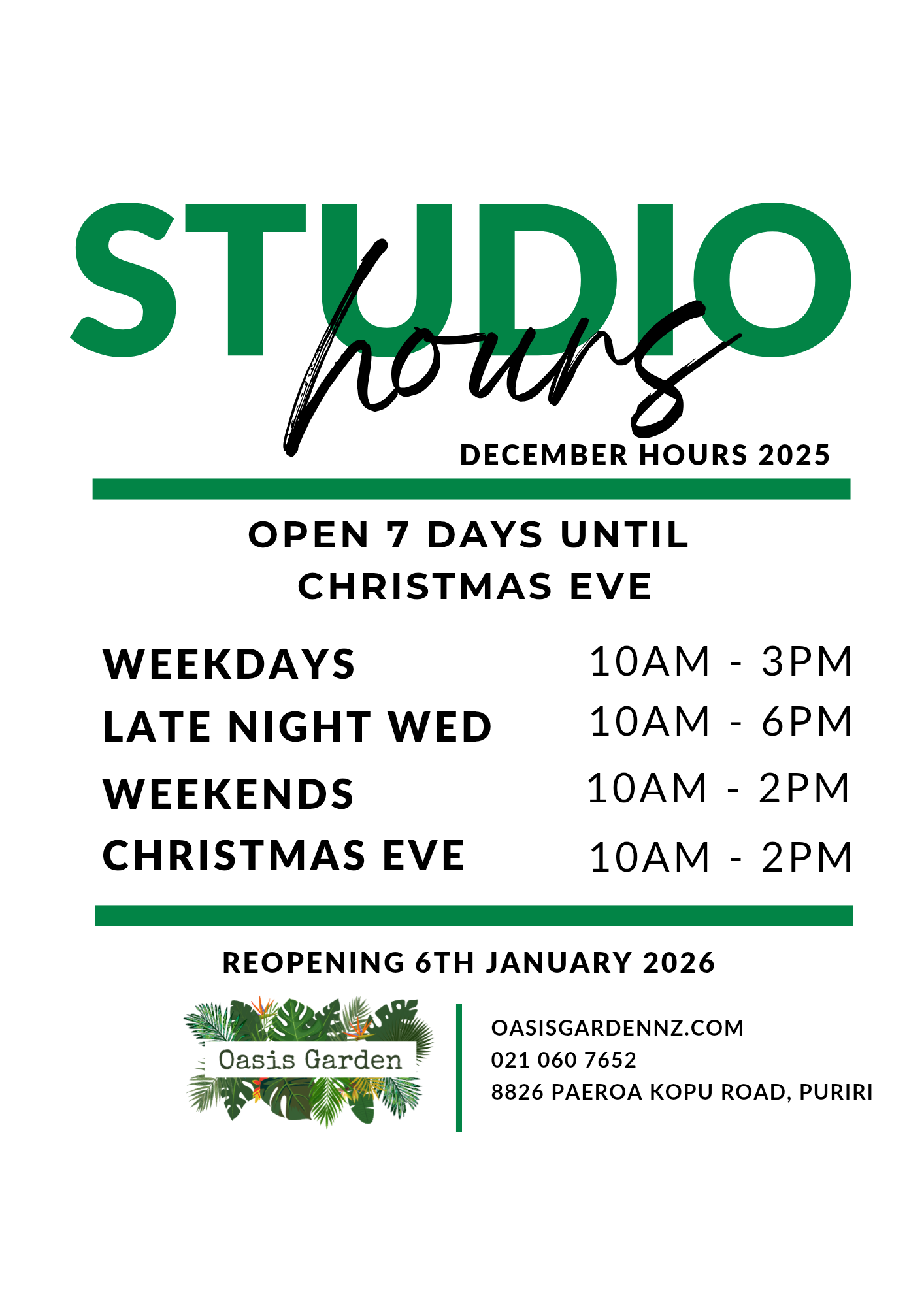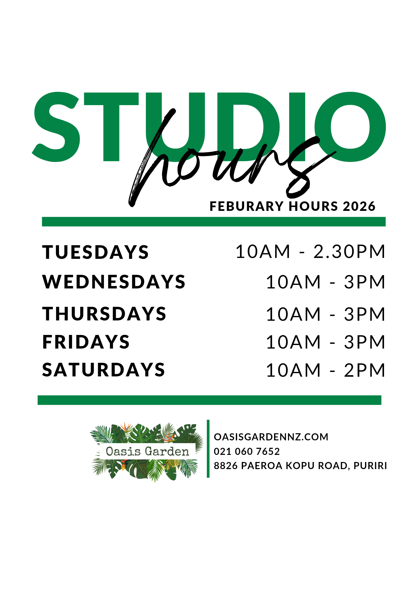 If you would like to visit the studio after hours you can do so via appointment. Please call or text me on 0210607652 to make a time❤️