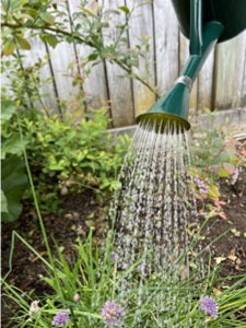 Plants need regular watering. Because of the long slender spout of this nostalgic French watering can, you can easily aim the water where you want to while holding it in one hand. The amount of water administered is regulated by gripping the handle and tilting forwards more or less, the detachable watering head enables you to choose between precise watering or a rain shower. The construction of the watering head enables different orientations on the spout. Additionally, it has a large opening to facilitate easy filling with water