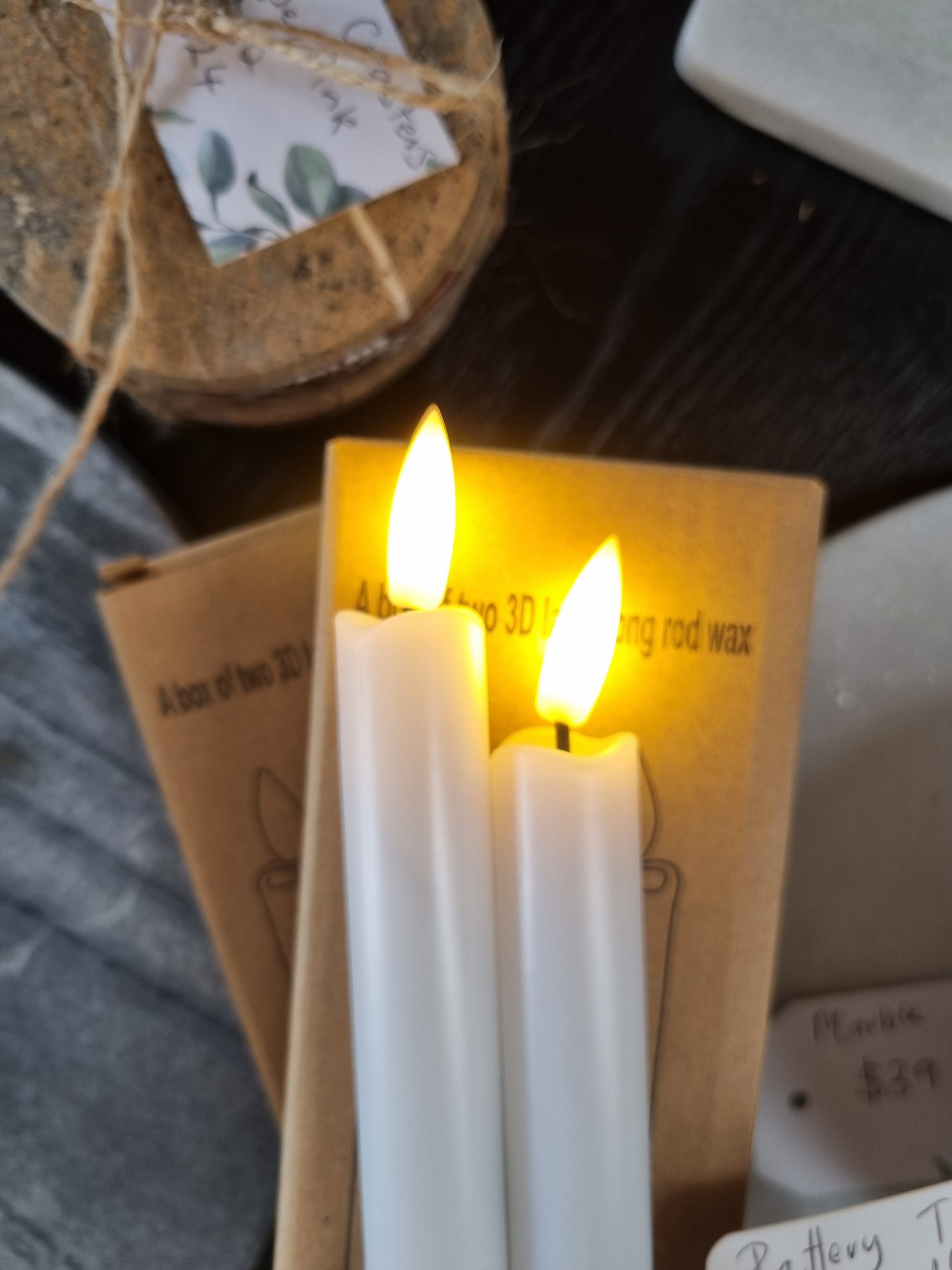 These elegant frickering white taper candles make a wonderful ‘safe’ edition to every table setting.