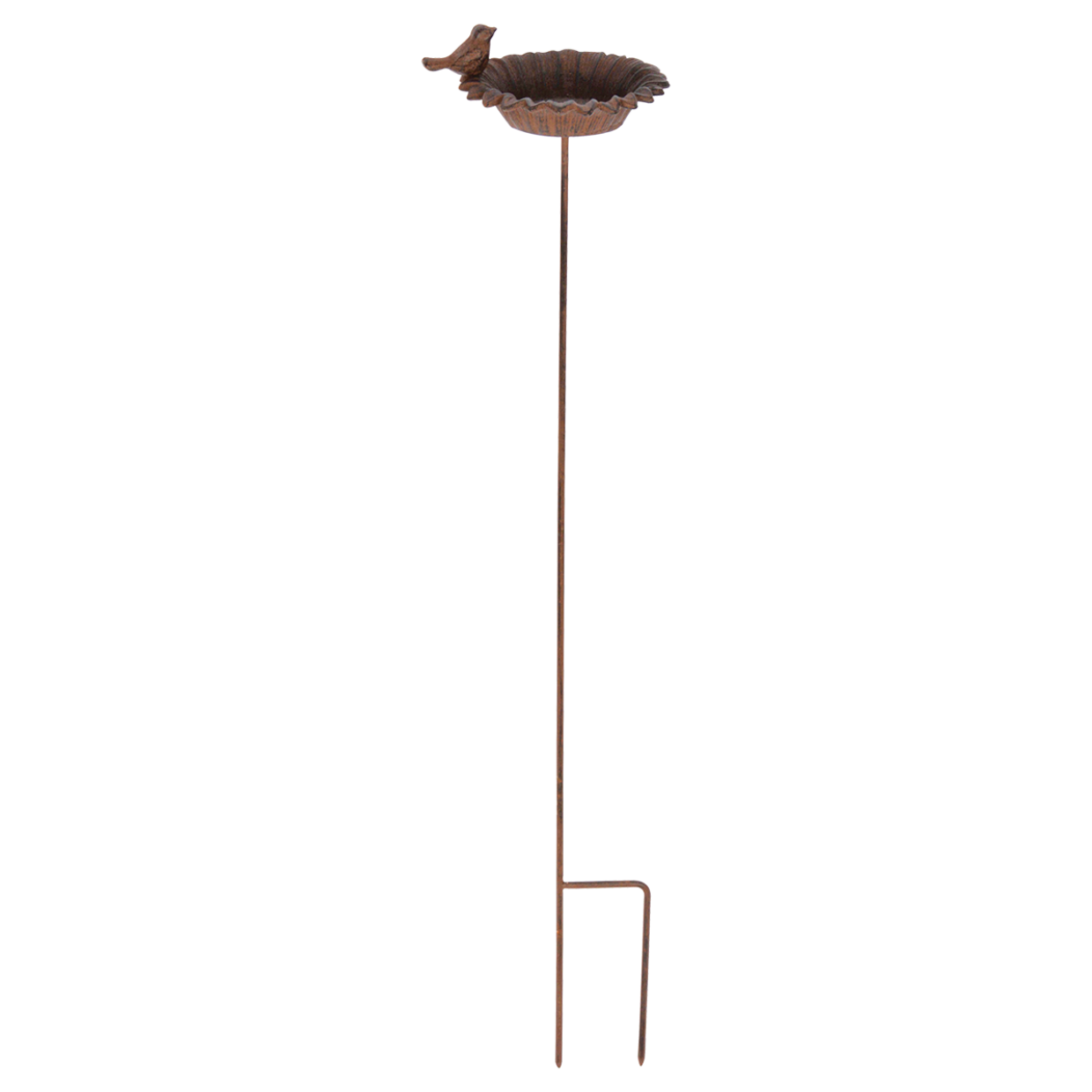 This cast iron tray in the shape of a flower can be filled with either food or water, and as such will provide the birds with a lovely drinking or bathing spot. A bird has already settled on the edge, it is up to other birds to quickly follow suit.