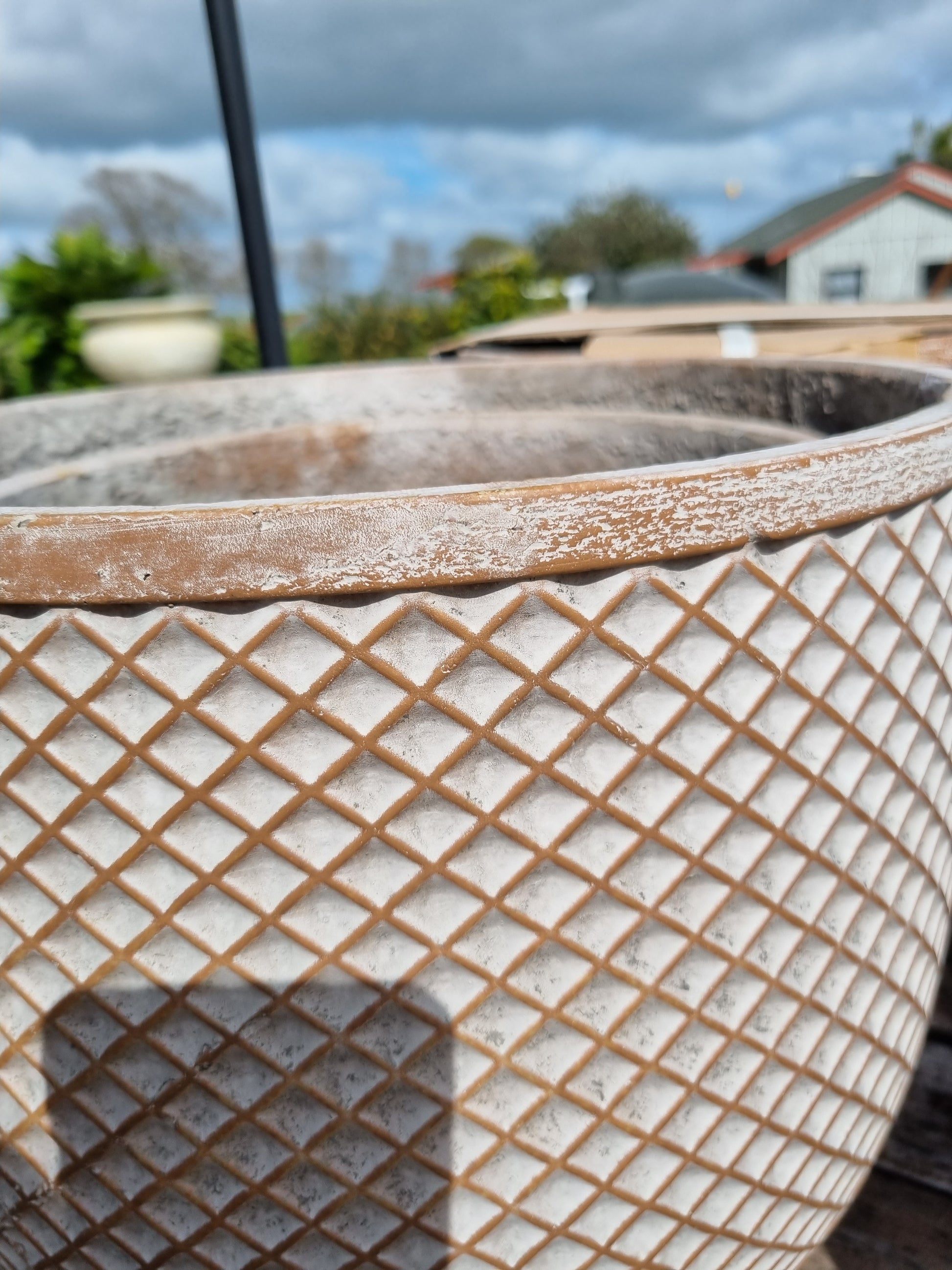 Each pot features a beautiful textured design finished with a subtle bronzey trim that adds a touch of elegance to any space.