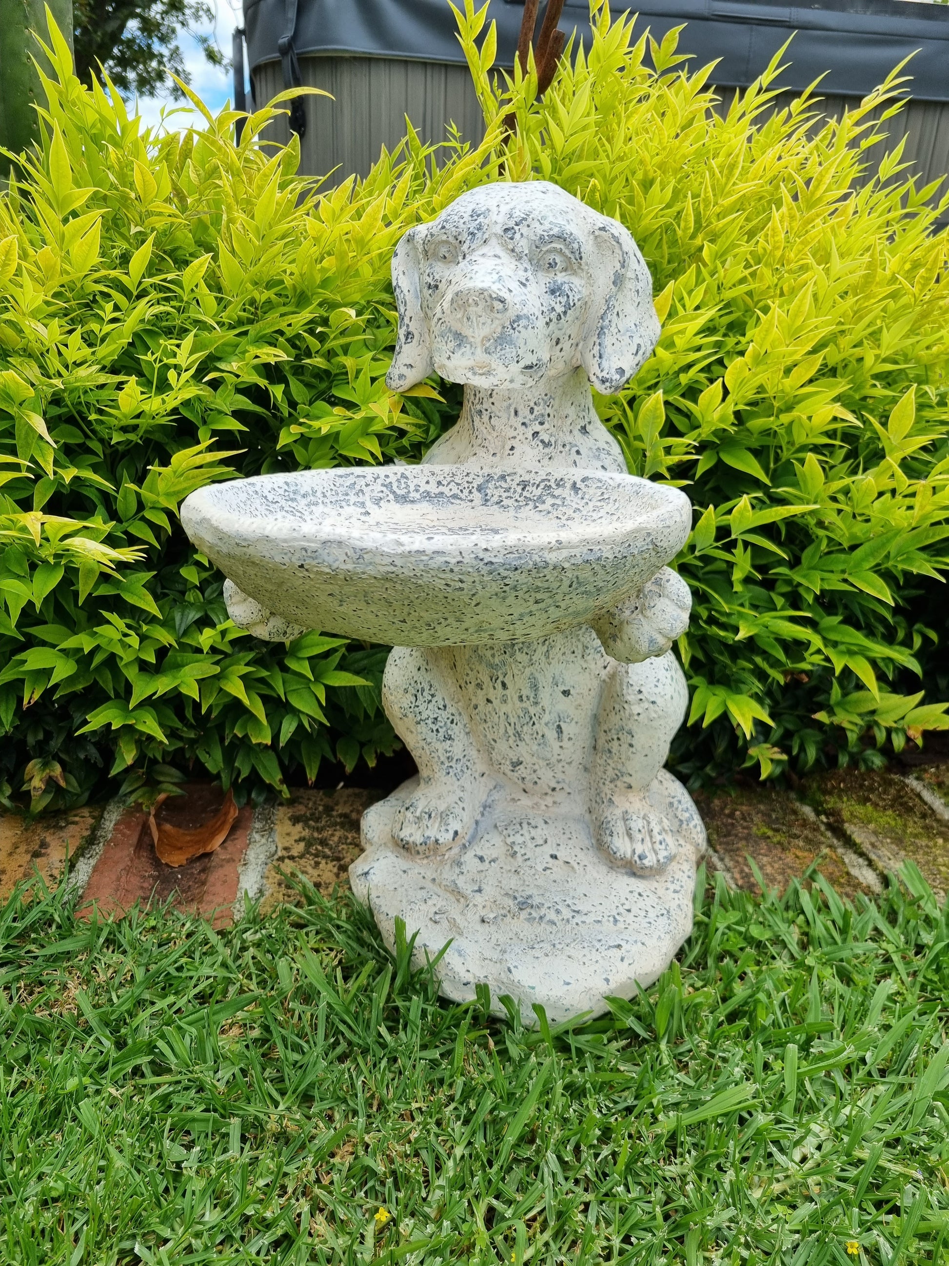 ATTRACT BIRDS WITH THIS ELEGANT FRENCH CHIC GARDEN DOG STATUE BIRDFEEDER or BIRDBATH. THE BEAUTIFULLY SCULPTED DOG STATUE WILL ADD APPEAL AND CHARM TO YOUR GARDEN OR LAWN. YOU WILL LOVE THE QUALITY CONSTRUCTION OF THIS GARDEN DECOR.