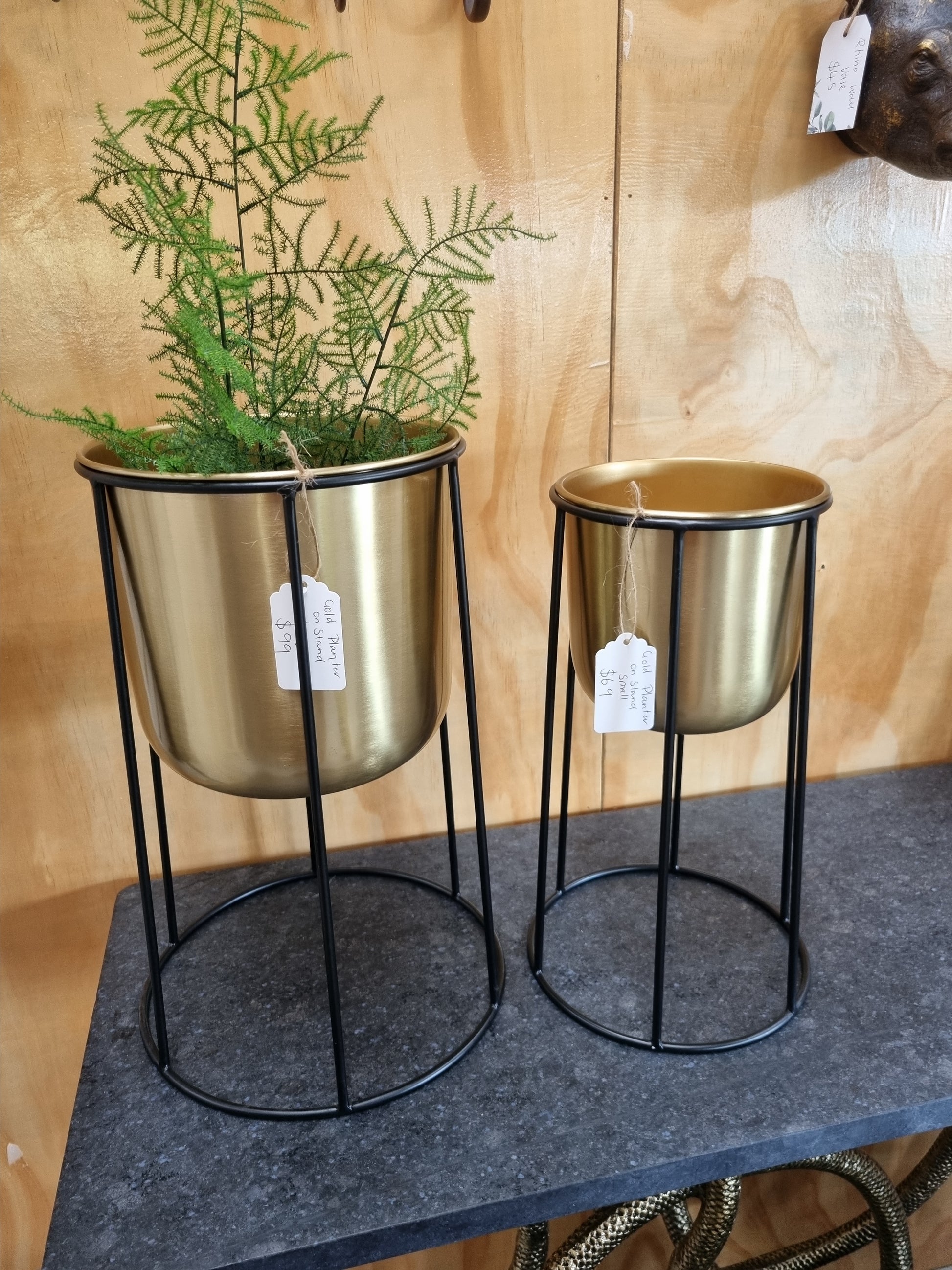 Elevate your plant game with our Gold Metal Planters on Black Stands!