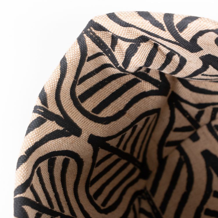 This reversible jute basket is natural on one side and features a hand screen printed black leaf design on the other. Great for storage or as a planter. Jute is a strong natural fibre with significant environmental benefits, it is 100% biodegradable, renewable and is sustainably harvested. Handmade by skilled women artisans working with Saidpur Enterprises, one of Trade Aid's fair trade partners in Bangladesh.
