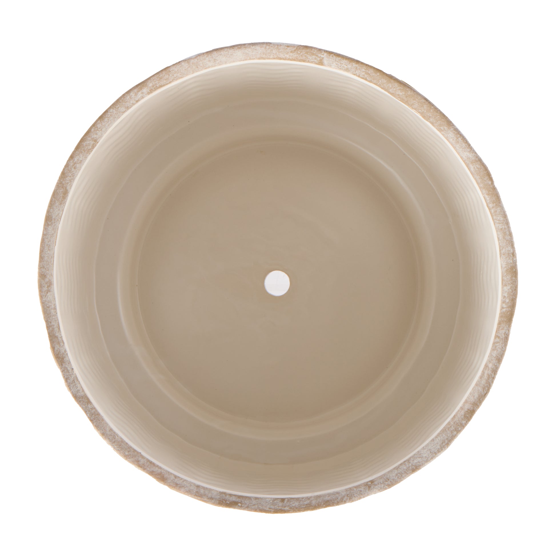 This Antibes Pot is made from stoneware with a rustic taupe and white striped finish.